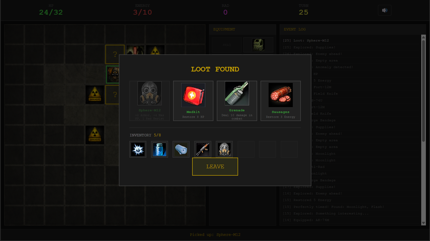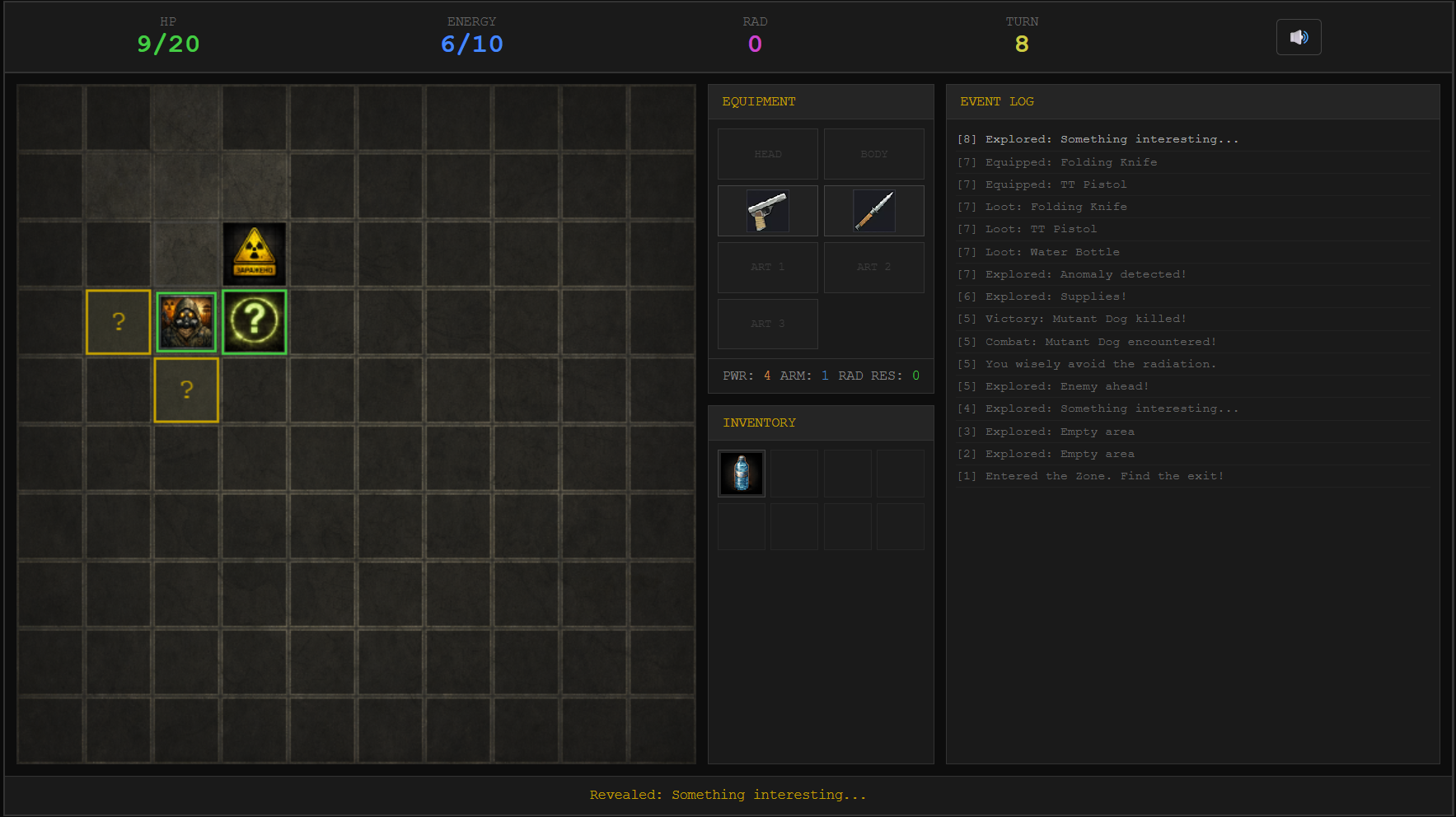 - Manage HP, Energy, and deadly Radiation